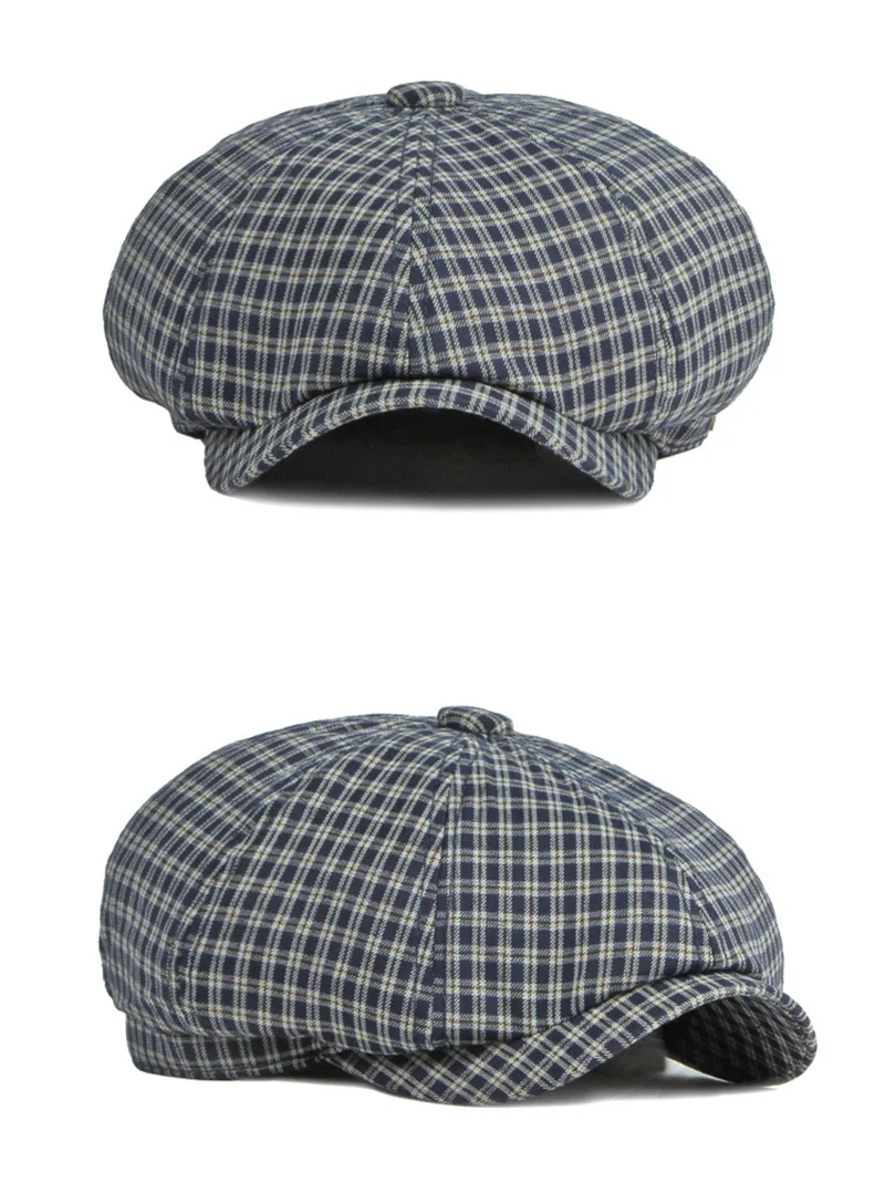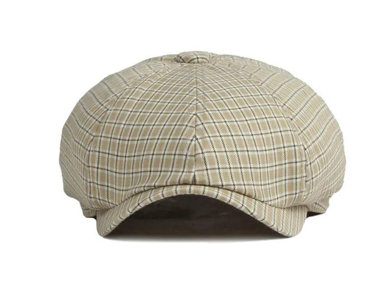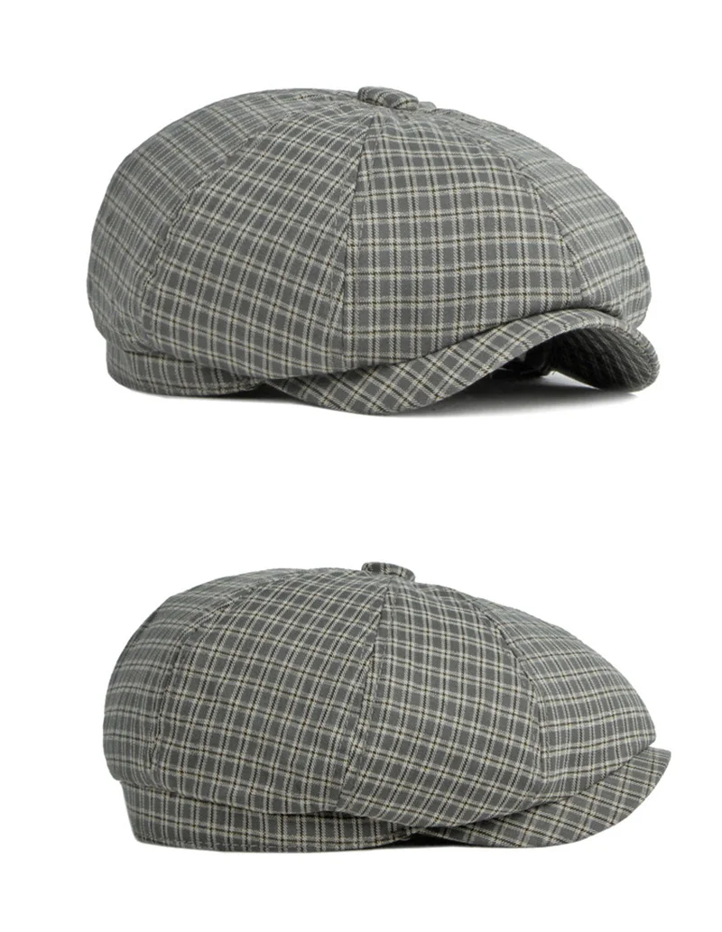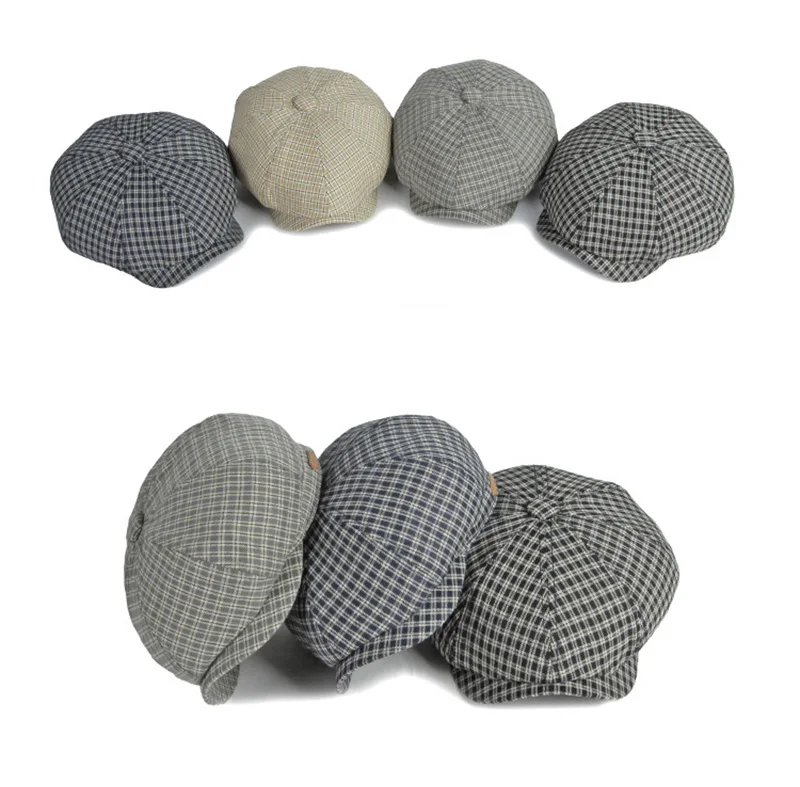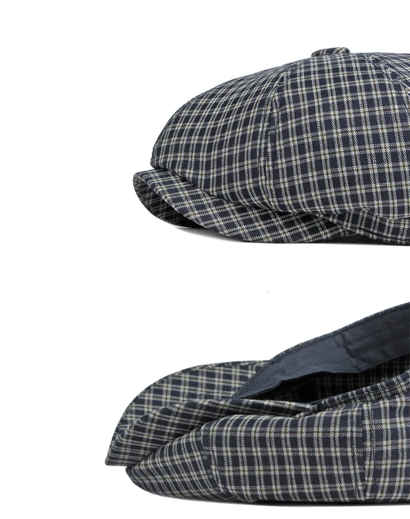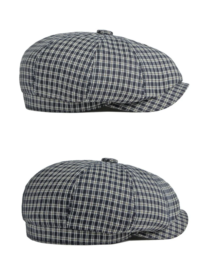 Spring Summer Octagonal Hat Men Women Little Plaid Eight-blade Painters Newsboy Cap Cotton Herringbone Flat Cap Dad Beret Hat