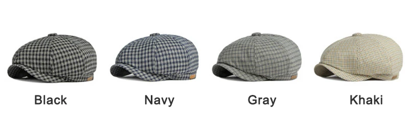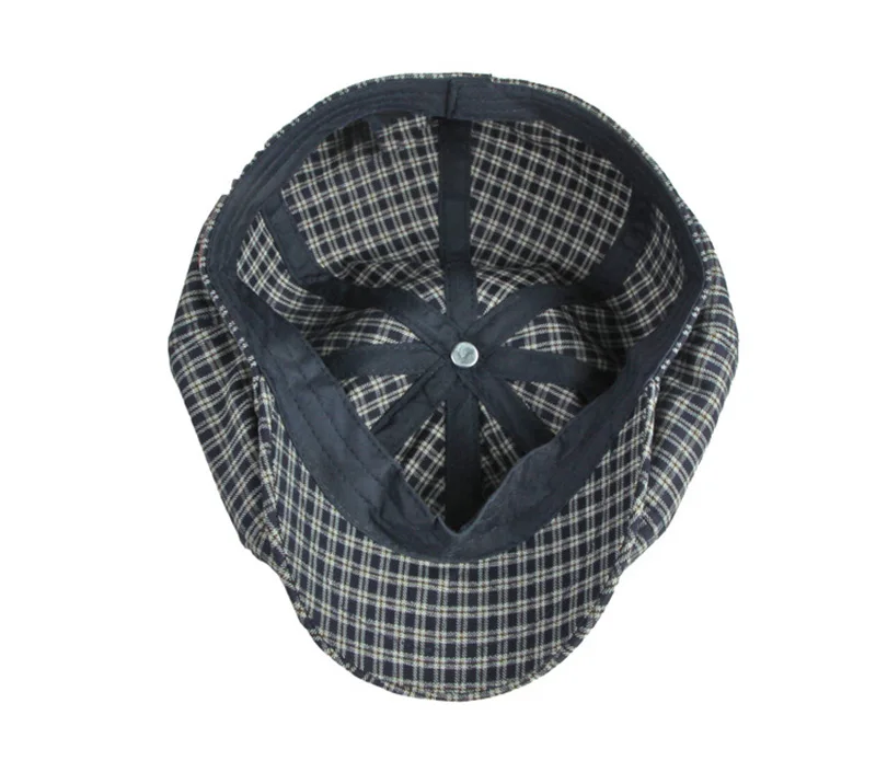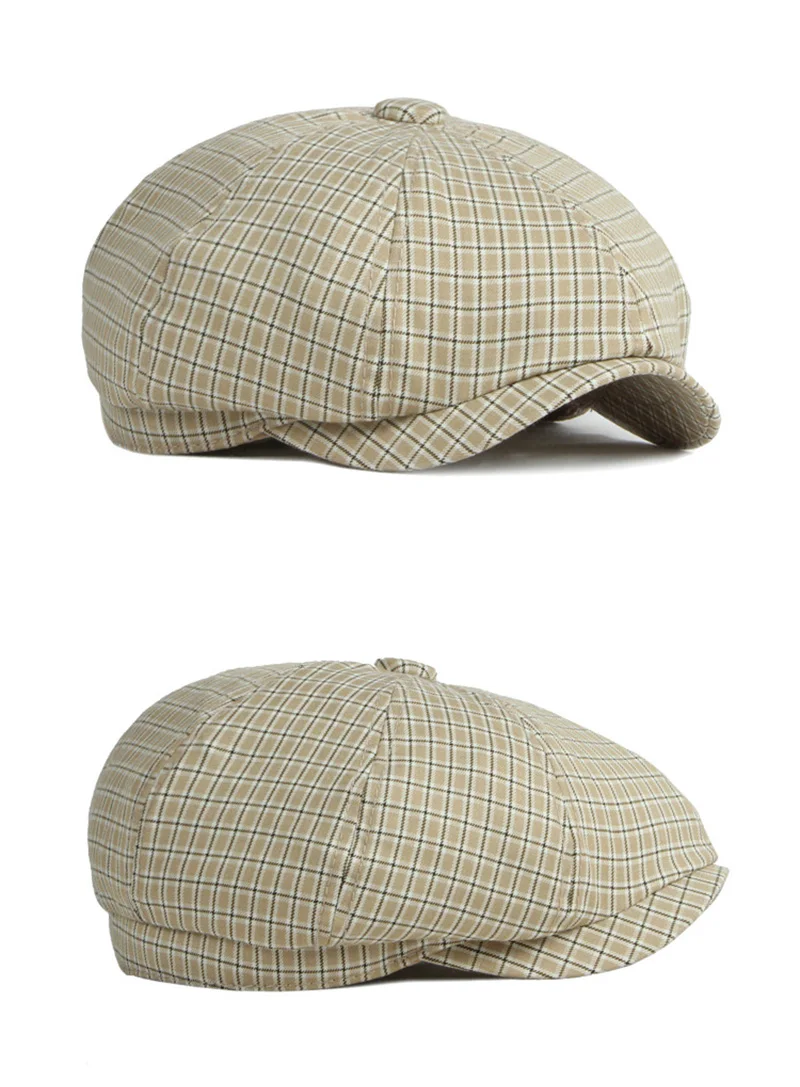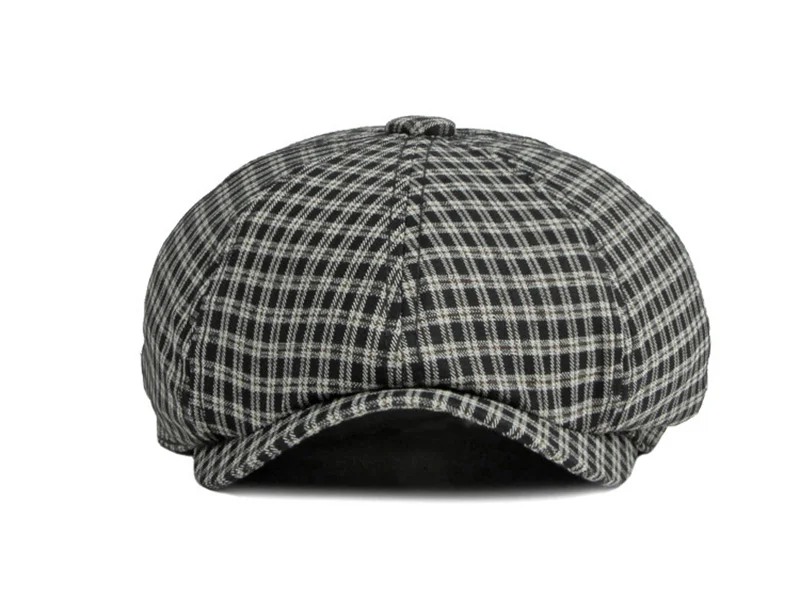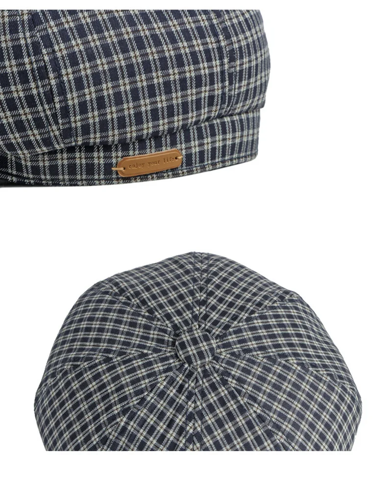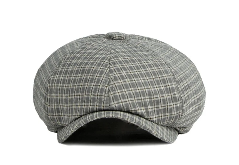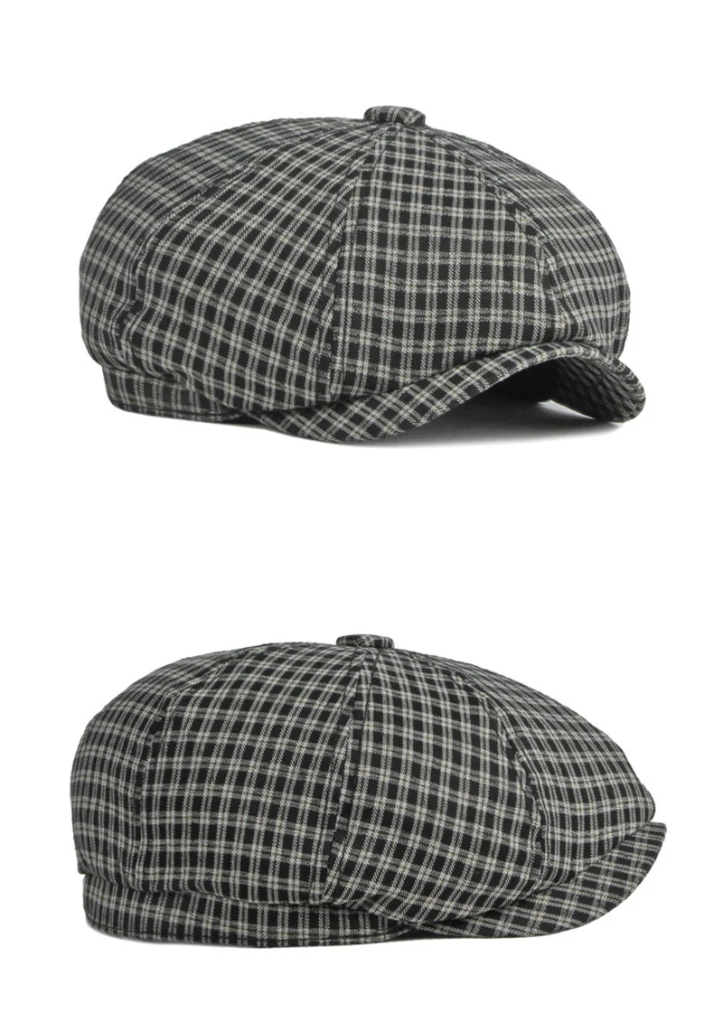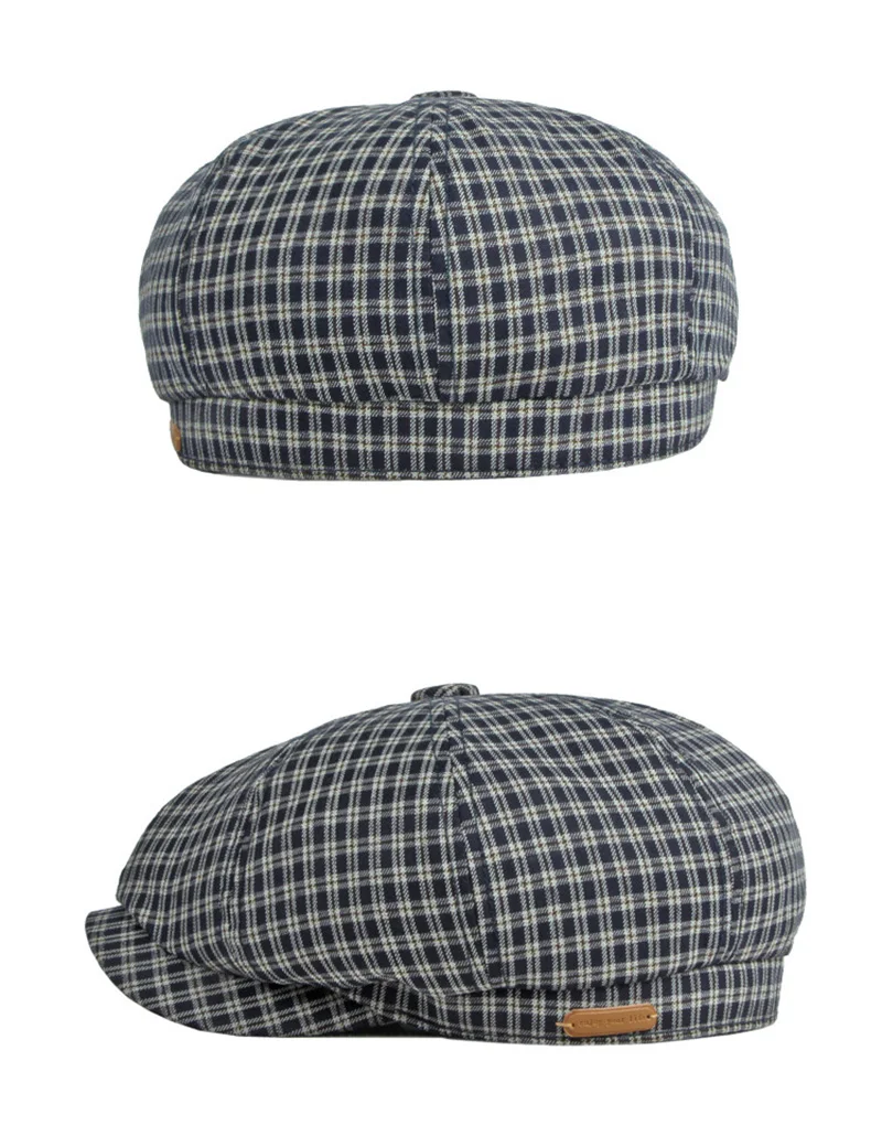 Spring Summer Octagonal Hat Men Women Little Plaid Eight-blade Painters Newsboy Cap Cotton Herringbone Flat Cap Dad Beret Hat