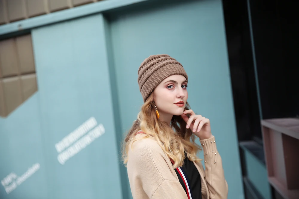 Bonnet Tricot Femme Marron à Relief
