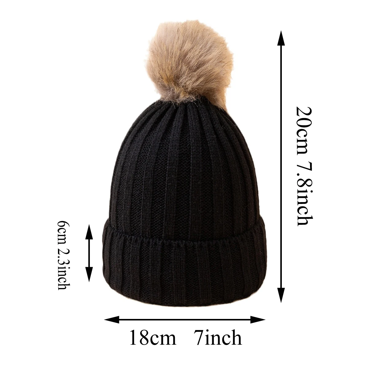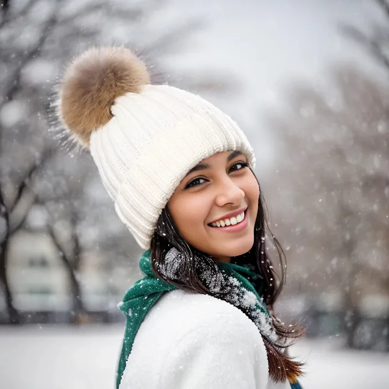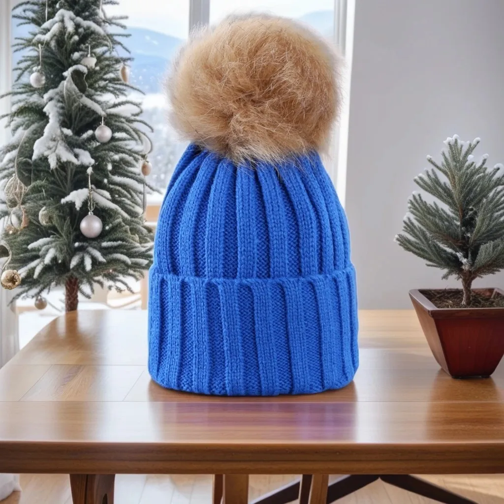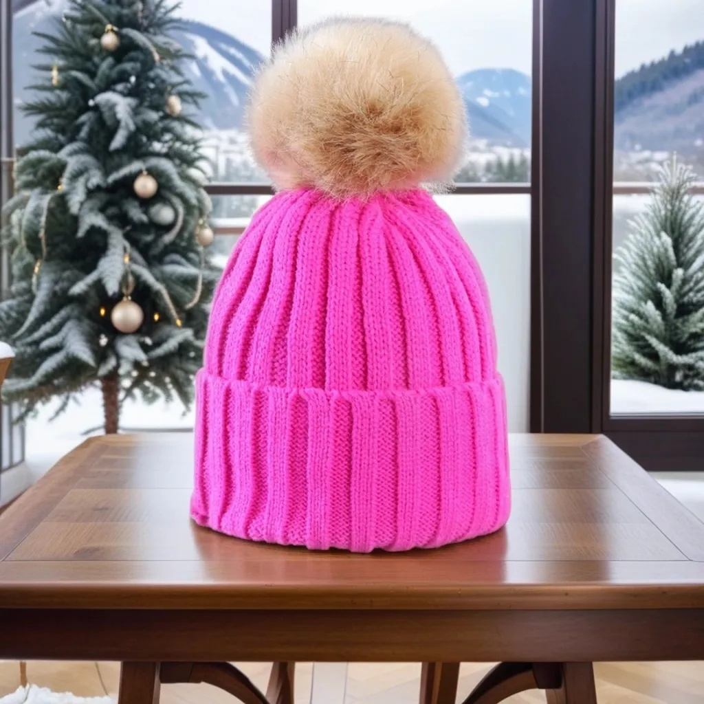 Bonnet Tricot Femme Noir avec Pompon