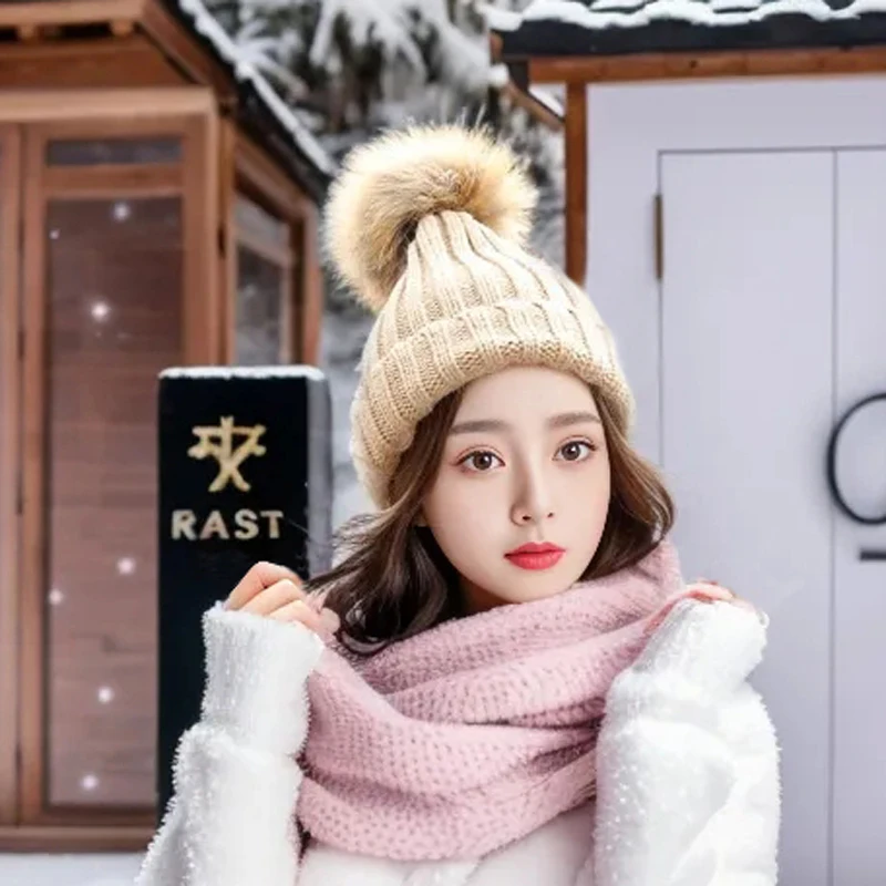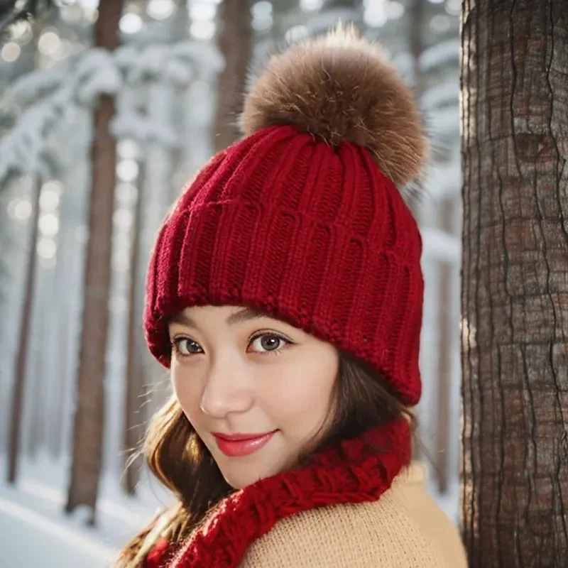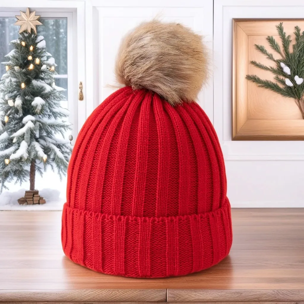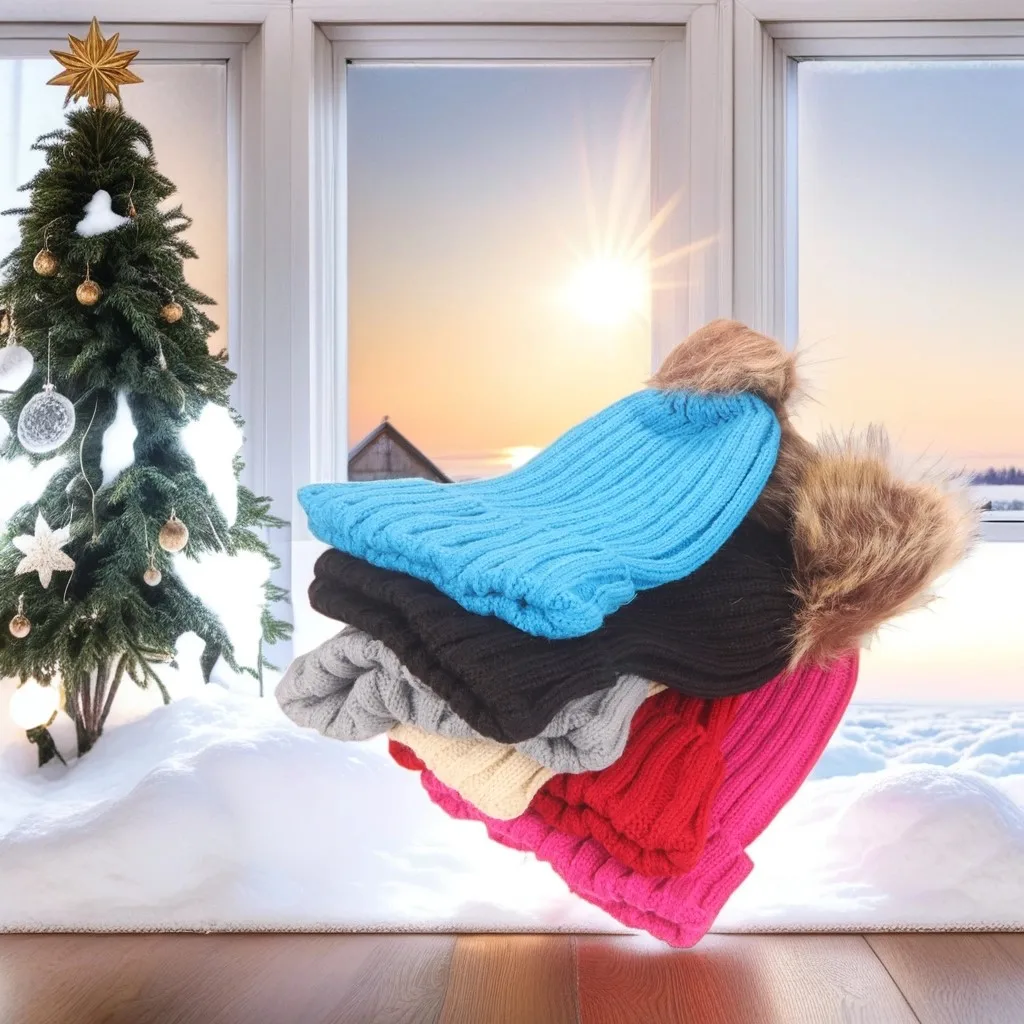 Bonnet Tricot Femme Noir avec Pompon